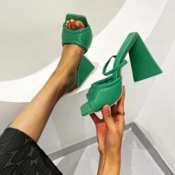 Solid Color Stylish Block Pyramid Heel Sandals